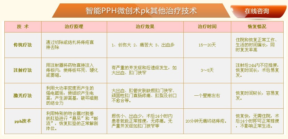 PPH微創術主要優點:痛苦少,,,一般,加快了康復周期,不影響日常生活。尤其是重度痔瘡治療的跨時代革命。