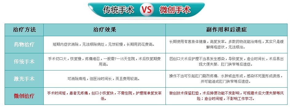 1,治療上:傳統手術由于受到技術的限制,在性與治療后遺癥的選擇上往往很難把握,因為如果要清除病灶,就會傷及正常缸墊組織,造成治療后肛門失禁、肛門狹窄等后遺癥的產生;而如果要減少傷害,則容易造成病灶清除不有效,這樣就會很容易腸。微創手術是由電腦全程鎖定和控制的,對于病灶大小有很好的把握,嚴格控制了治療的范圍和力度,這就有效減少了痔瘡治療后遺癥和腸率的問題。