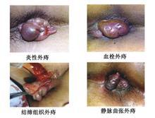 4. 靜脈曲張性外痔:肛緣周圍皮下曲張的靜脈團(tuán),下蹲腹壓增加,排便時(shí)增大,恢復(fù)正常體位后癥狀可不同程度的減輕.
